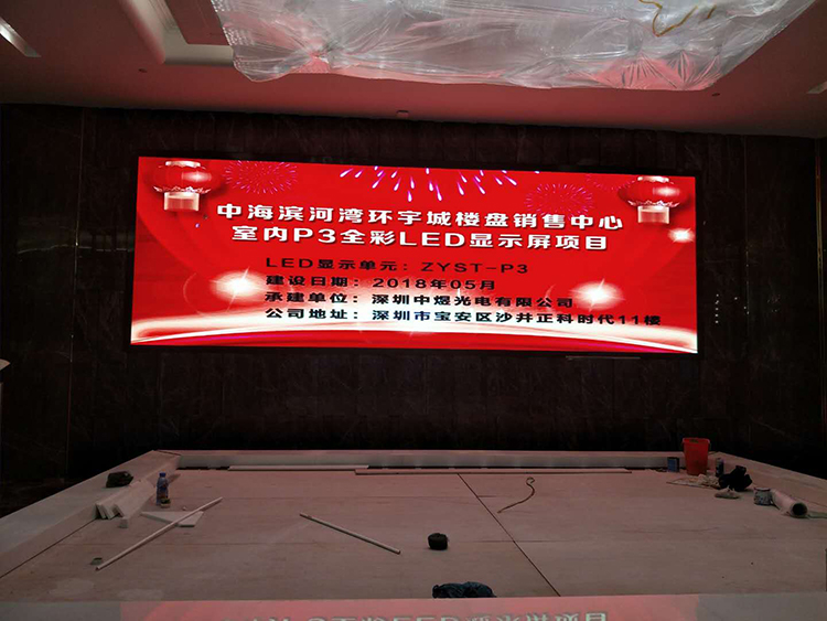 中海濱河灣環宇城樓盤銷售中心選擇中宇視通P3全彩LED顯示屏,項目順利完成驗收。