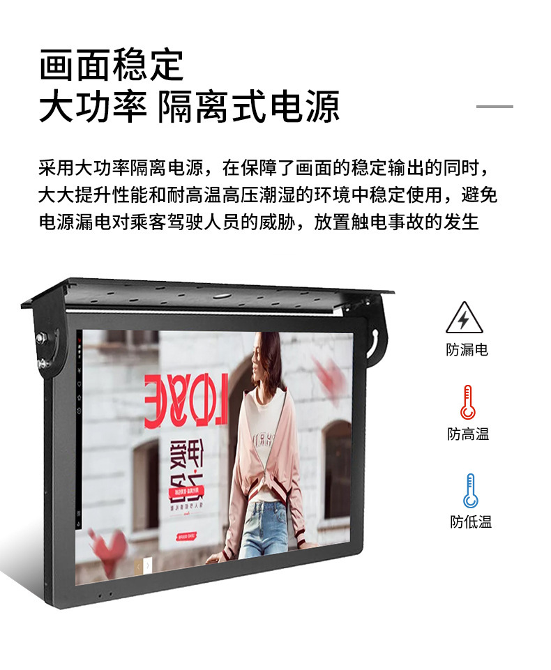 中宇視通是18.5寸車載廣告機生產廠家,我們提供吸頂車載廣告機、背掛車載廣告機、折疊式車載廣告機多種安裝方式,滿足各種車型,內置抗振設計,減少車載環境內震動對機器本身的影響,能讓機器在特殊情況中穩定運行。